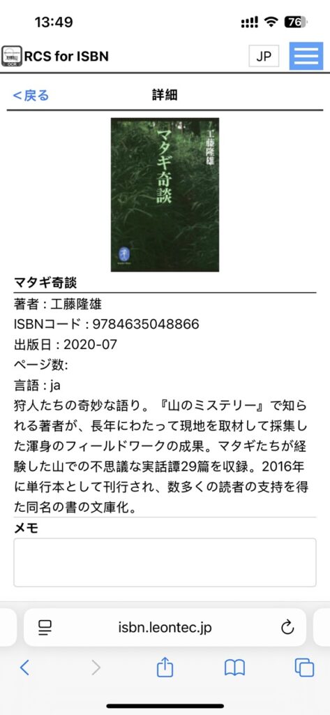 さらに、取得したISBNから書籍の詳細情報をすぐに確認でき、SNSやEメールを通じて簡単に共有することも可能です。